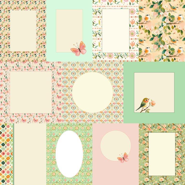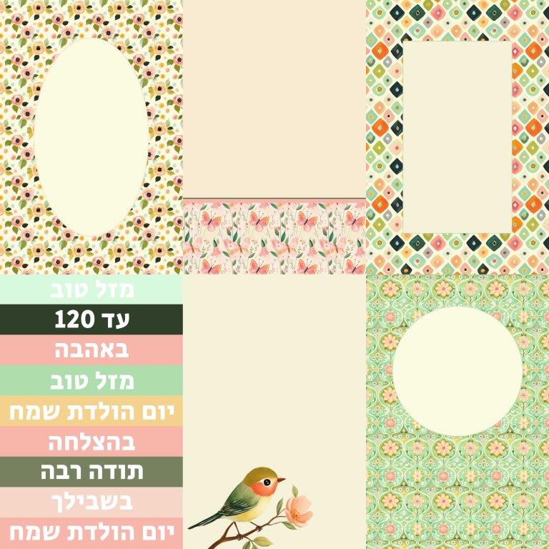 מארז נייר מדוגם עבה ואיכותי חד צדדי (250 גרם) בגודל 12X12 אינץ’ (30.48X30.48 ס”מ) המארז כולל 24 דפים: 11 דפים מדוגמים (2 העתקים מכל דף)